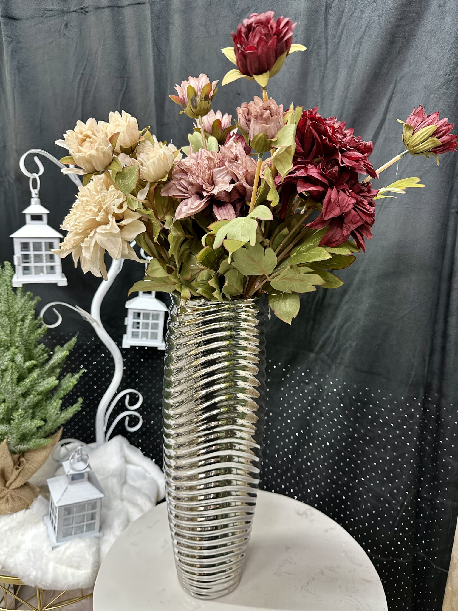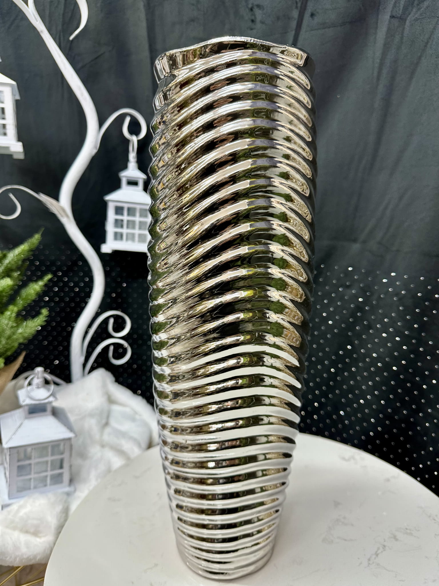 Ceramika to modny dodatek do każdego wnętrza. Pozwala na dowolne kształtowanie aranżacji od tych klasycznych, przez boho po wnętrza urządzone w stylu nowoczesnym czy minimalistycznym. Wazon RENI wyróżnia się smukłym kształtem oraz wytłaczanym geometrycznym wzorem i lśniącą powierzchnią. Srebrny kolor wpasuje się doskonale w każdą aranżację. Glinka ceramiczna, z której wykonany został wazon, charakteryzuje się niezwykle dużą wytrzymałością. Zachwyci Cię wyjątkowy design wazonu. Kolekcjka RENI oprócz wazonów obejmuje również świeczniki, pojemniki oraz doniczki. Skompletuj własną kompozycję!