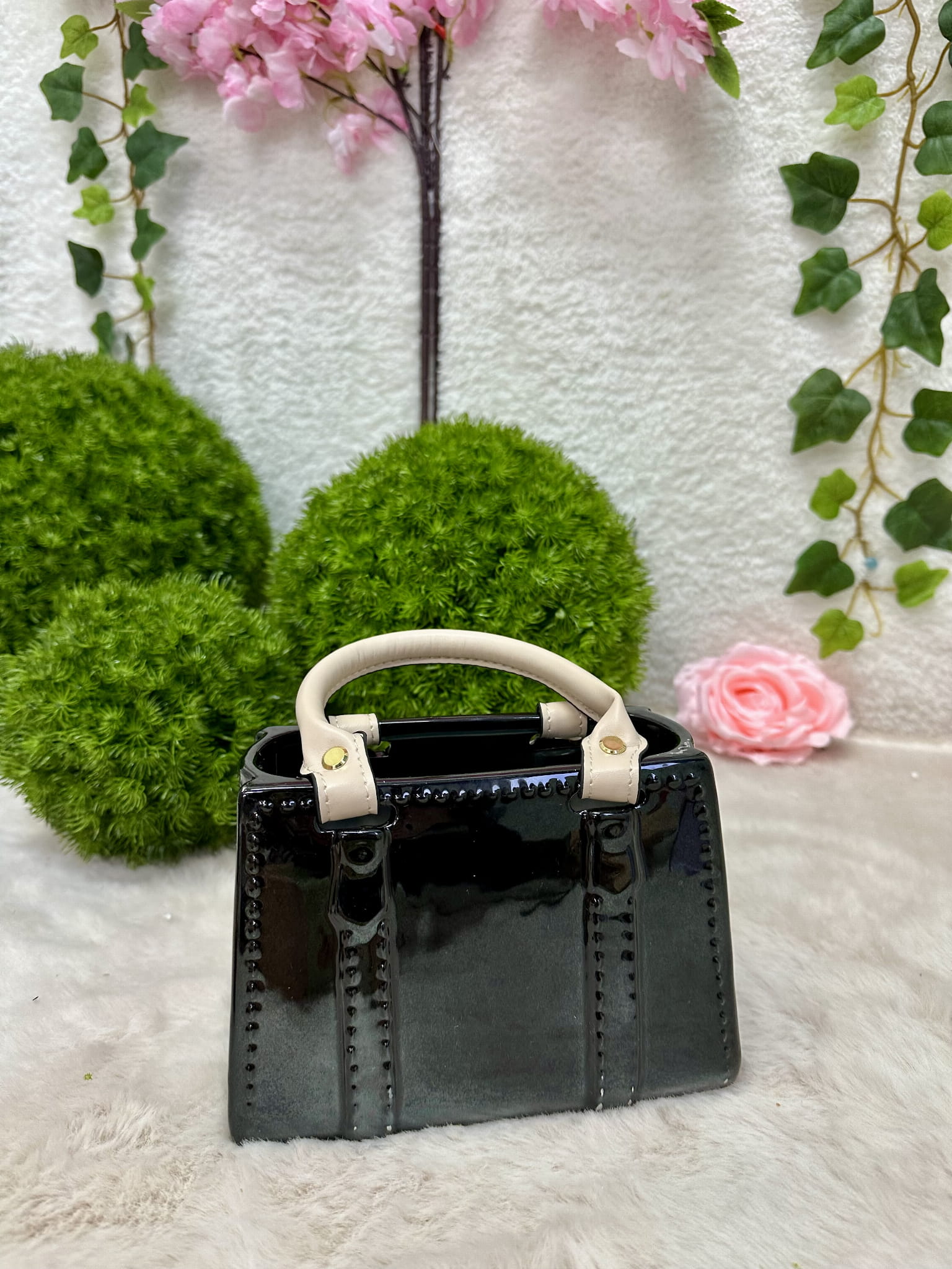 Ceramiczny wazon w kształcie torebki czaruje urokiem oraz niezwykle prezentuje się w każdym wnętrzu. Postaw go na komodzie, stole i ciesz się lustrzanym blaskiem. Świetnie prezentuje się zarówno w nowoczesnych, jak i klasycznych wystrojach. Idealne miejsce dla każdego rodzaju kwiatów. W połączeniu z tulipanami prezentuje się świetnie.