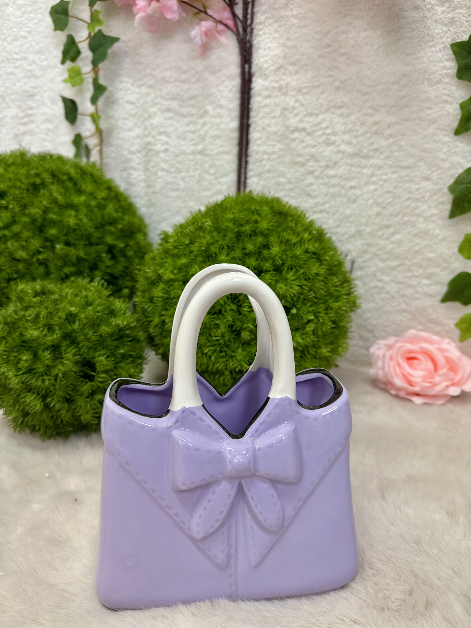 Ceramiczny wazon w kształcie torebki czaruje urokiem oraz niezwykle prezentuje się w każdym wnętrzu. Postaw go na komodzie, stole i ciesz się lustrzanym blaskiem. Świetnie prezentuje się zarówno w nowoczesnych, jak i klasycznych wystrojach. Idealne miejsce dla każdego rodzaju kwiatów. W połączeniu z tulipanami prezentuje się świetnie.