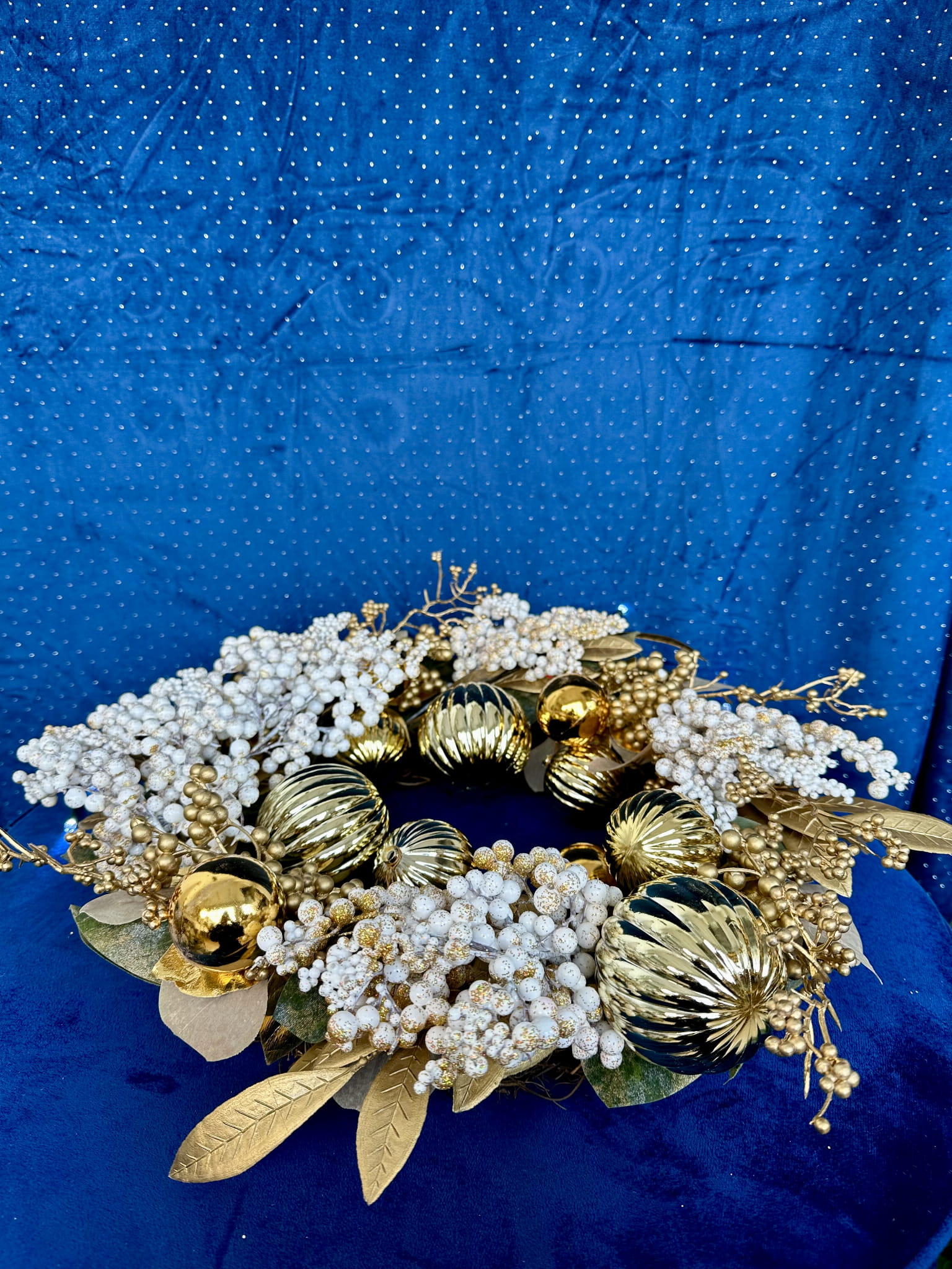 Wianek dekoracyjny z liści ze złotymi dodatkami 55