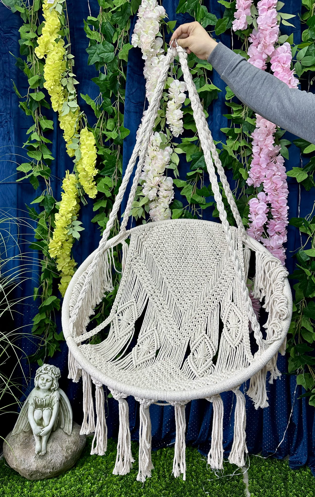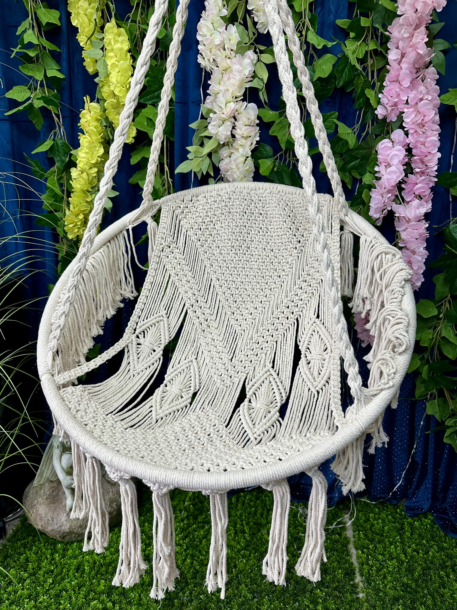 Wiszący kokon estetyczny a za razem funkcjonalny. Będzie pięknym wyposażeniem naszego tarasu czy ogrodu.
