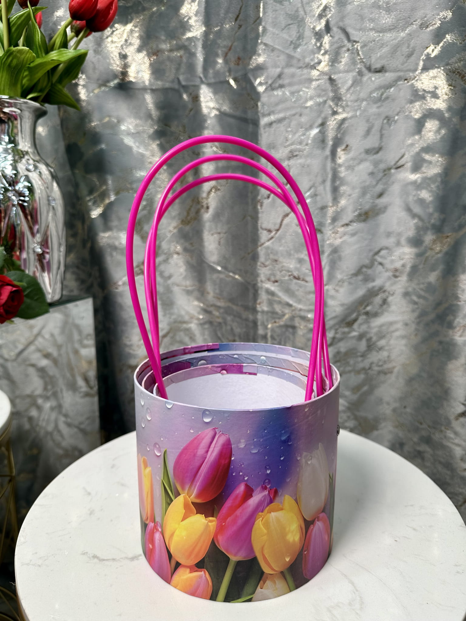 To wyjątkowe pudełko jest wykonane z trwałego materiału i zaprojektowane z dbałością o Każdy detal, aby zapewnić stylowy wygląd. Idealne do prezentacji kwiatów.