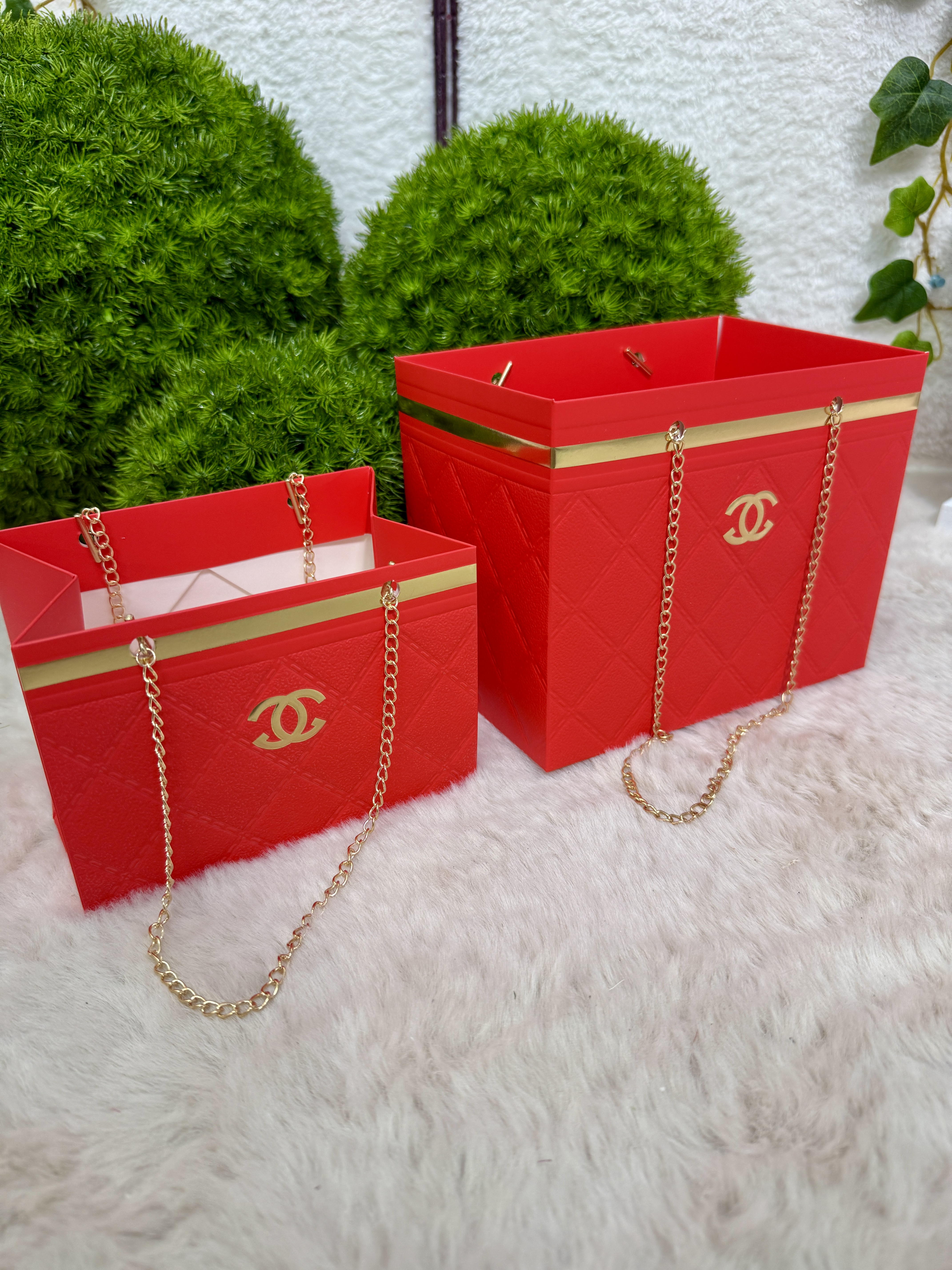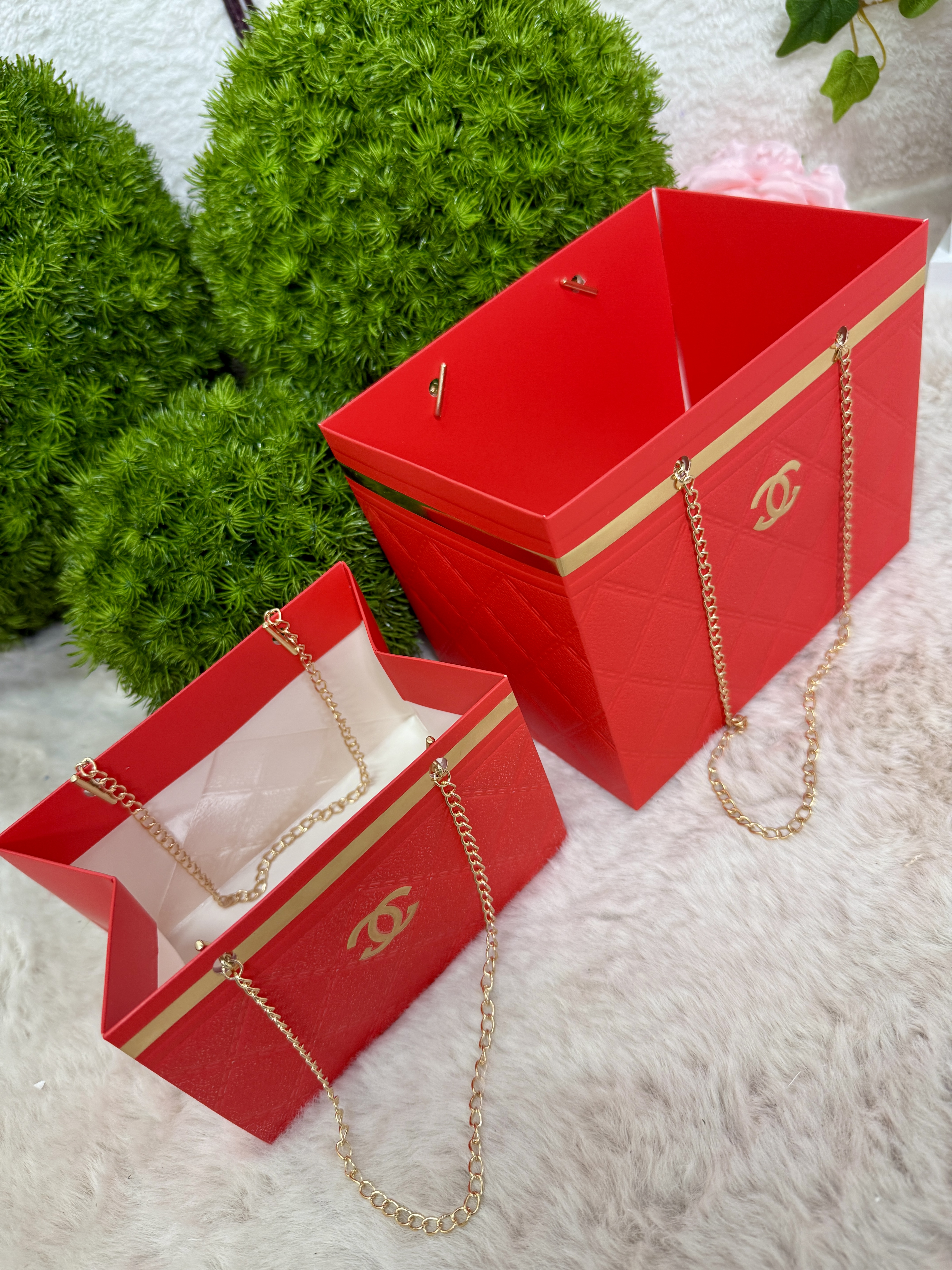 zestaw dwóch eleganckich pudełek dekoracyjnych w formie torebek inspirowanych stylem luksusowym.