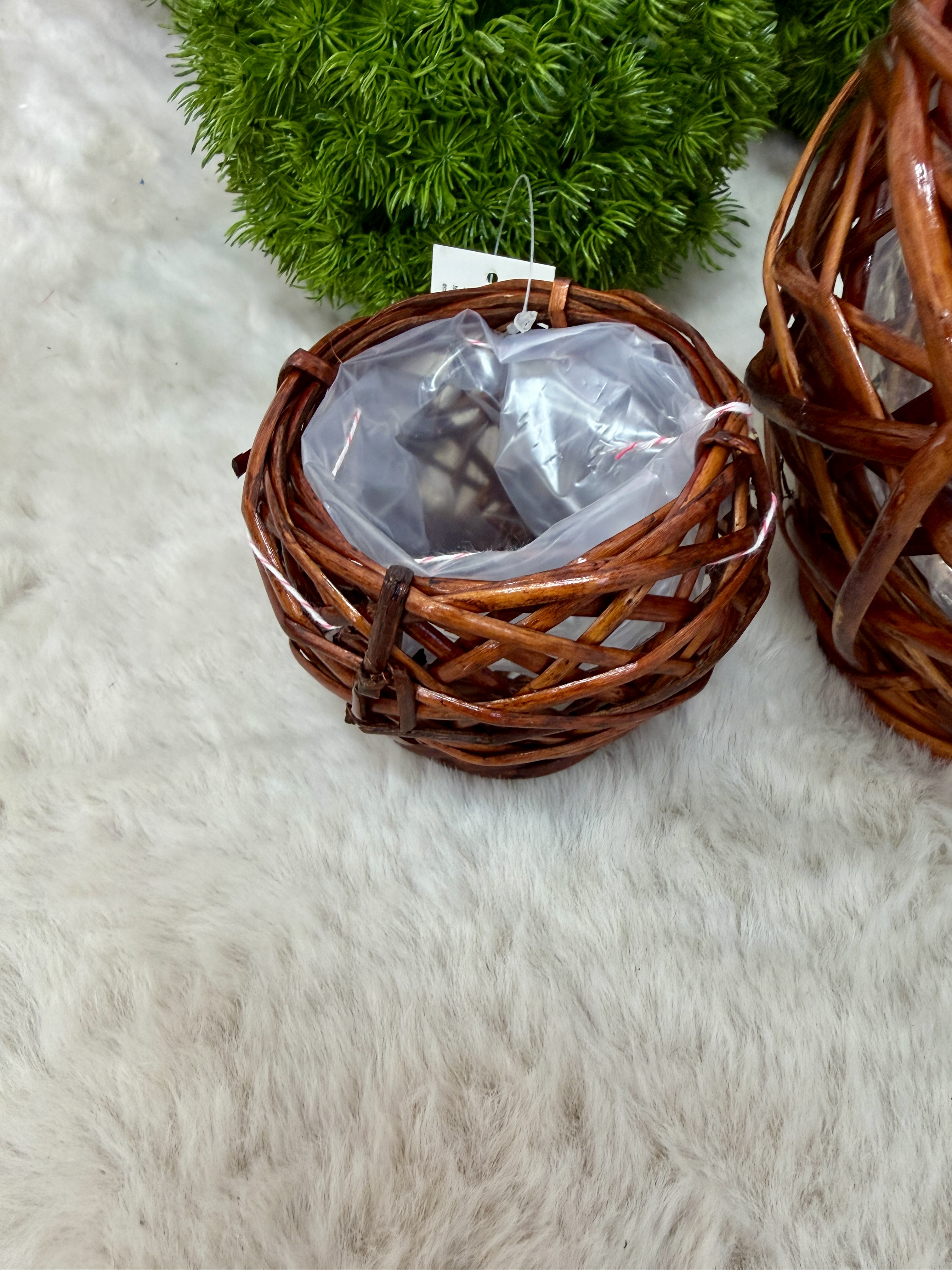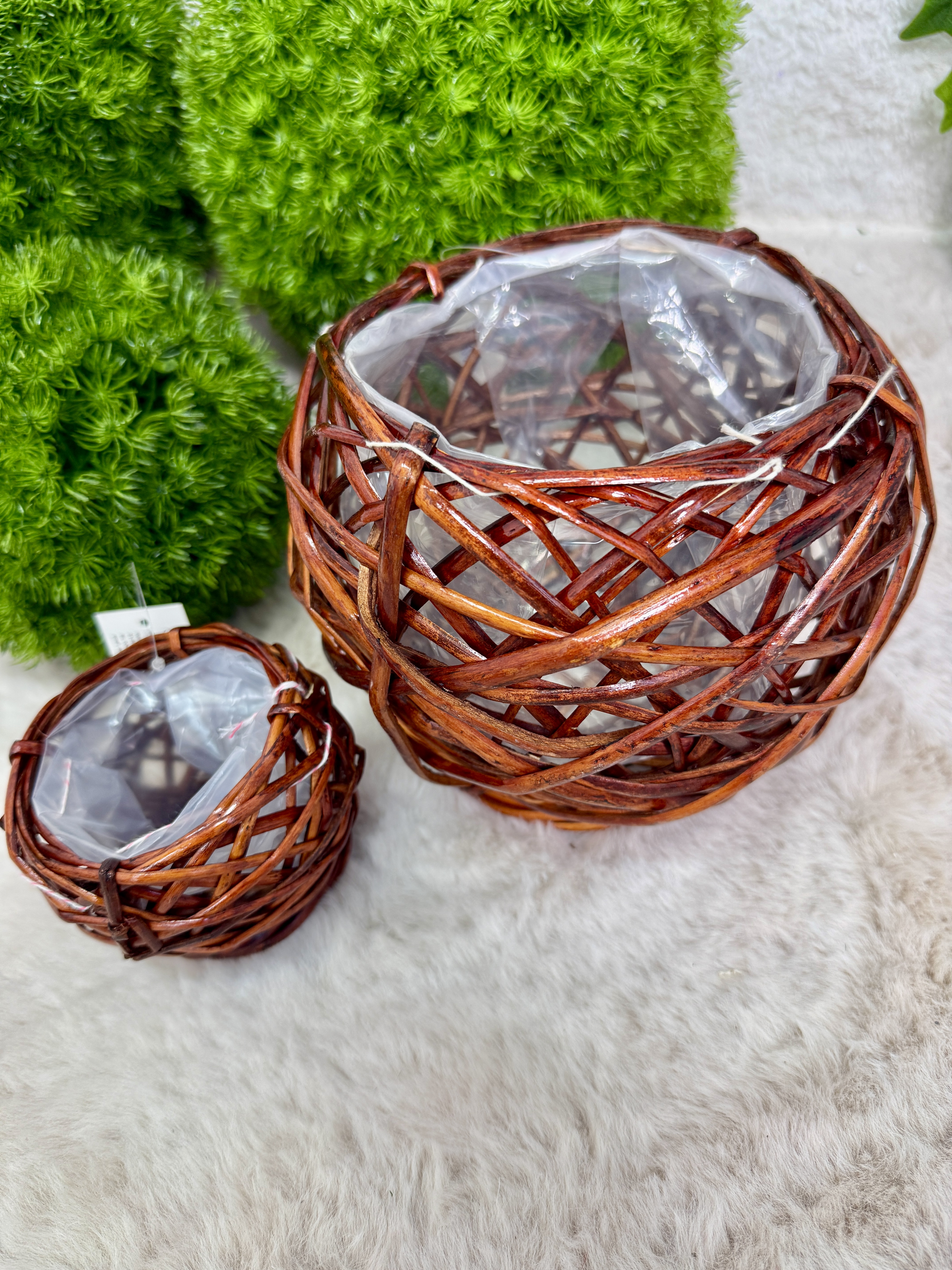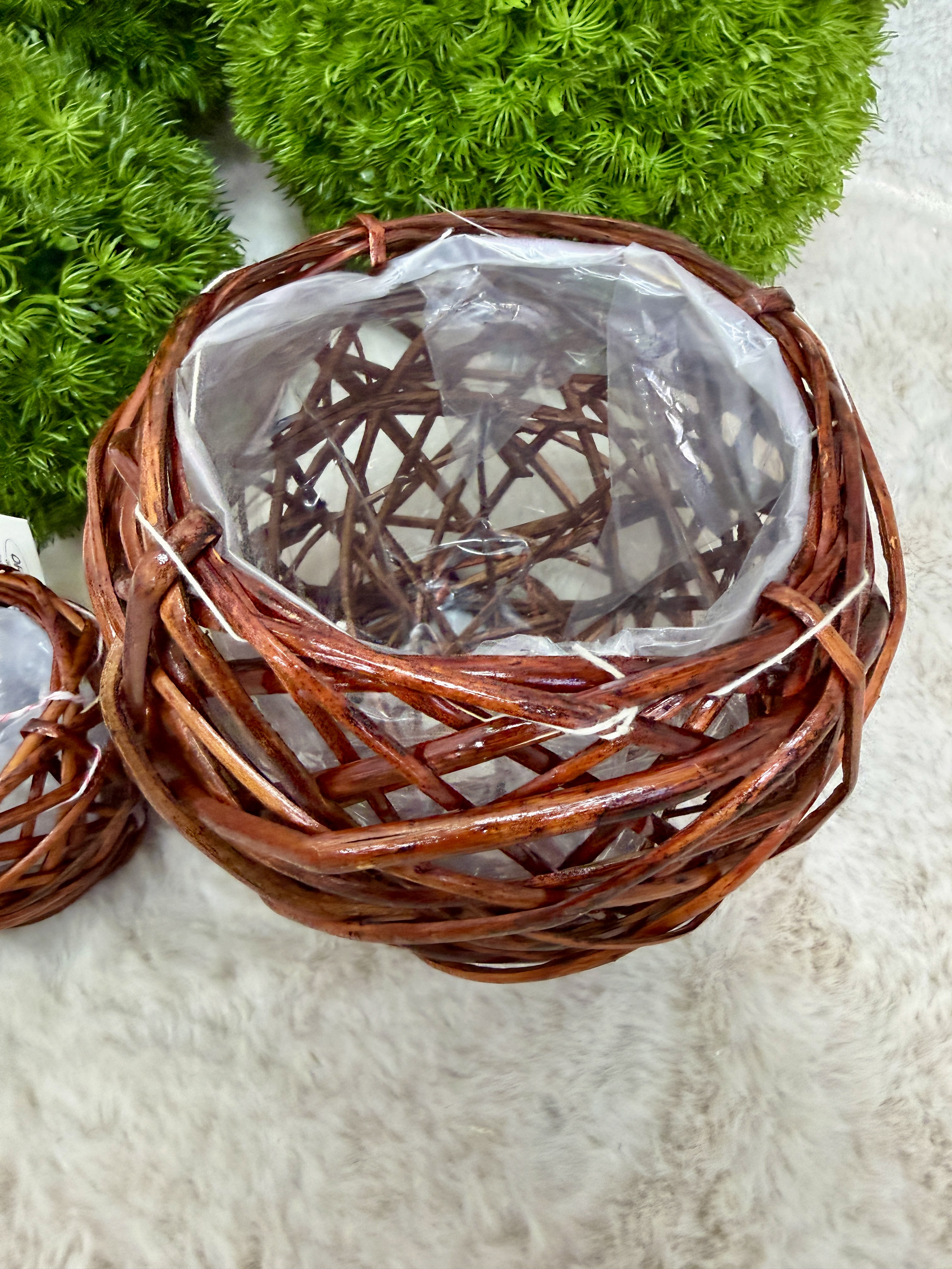 - Materiał: naturalna wiklina (plecionka) + wkład z tworzywa (folia zabezpieczająca)